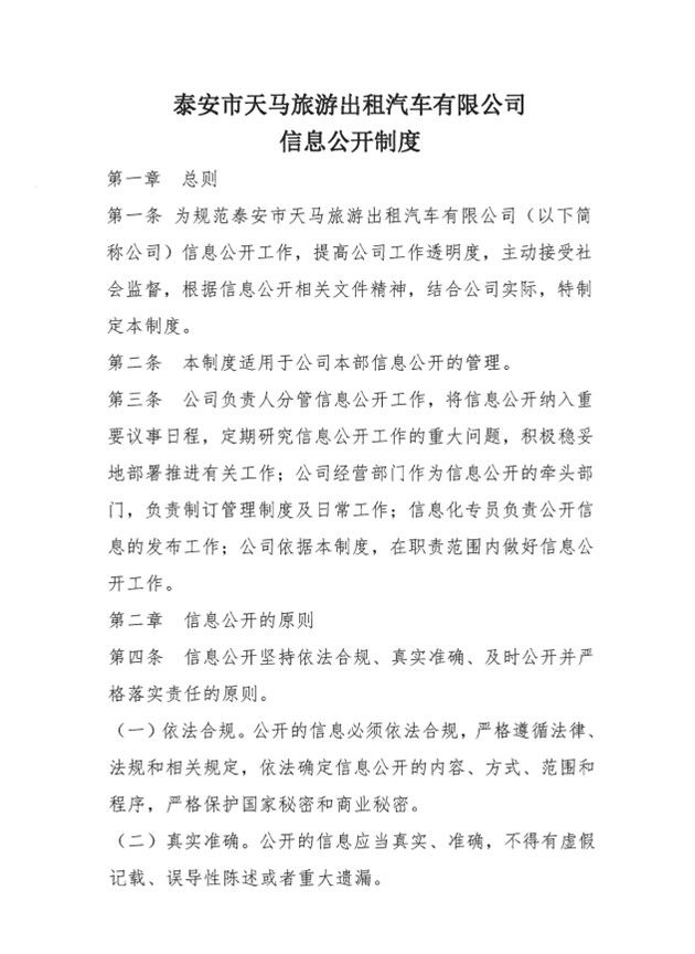 泰安市天馬旅游出租汽車有限公司信息公開制度